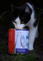 Both our cats really like Anifit food. I can't tell any difference between the varieties either. When it's feeding time, they meow vigorously and when I walk into the garden with the tins to take a photo, they come along curiously.